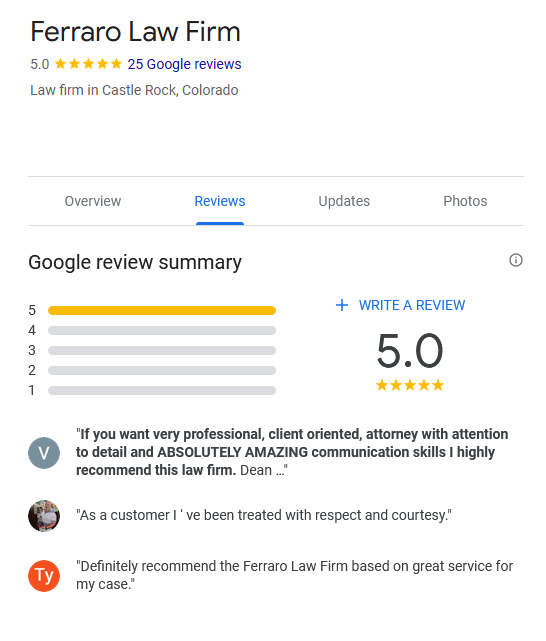Ferraro Law Firm was founded by Dean Ferraro. Dean earned his Bachelor's Degree from California State Polytechnic University, Pomona ("Cal Poly Pomona") in 1992 and his J.D. Degree from the University of Mississippi School of Law ("Ole Miss") in 1996. He is licensed to practice law in the State Courts of Colorado, Tennessee, and California (currently inactive in CA). Dean is also admitted to practice before the United States District Courts of Colorado (District of Colorado), California (Central District), and Tennessee (Eastern District).